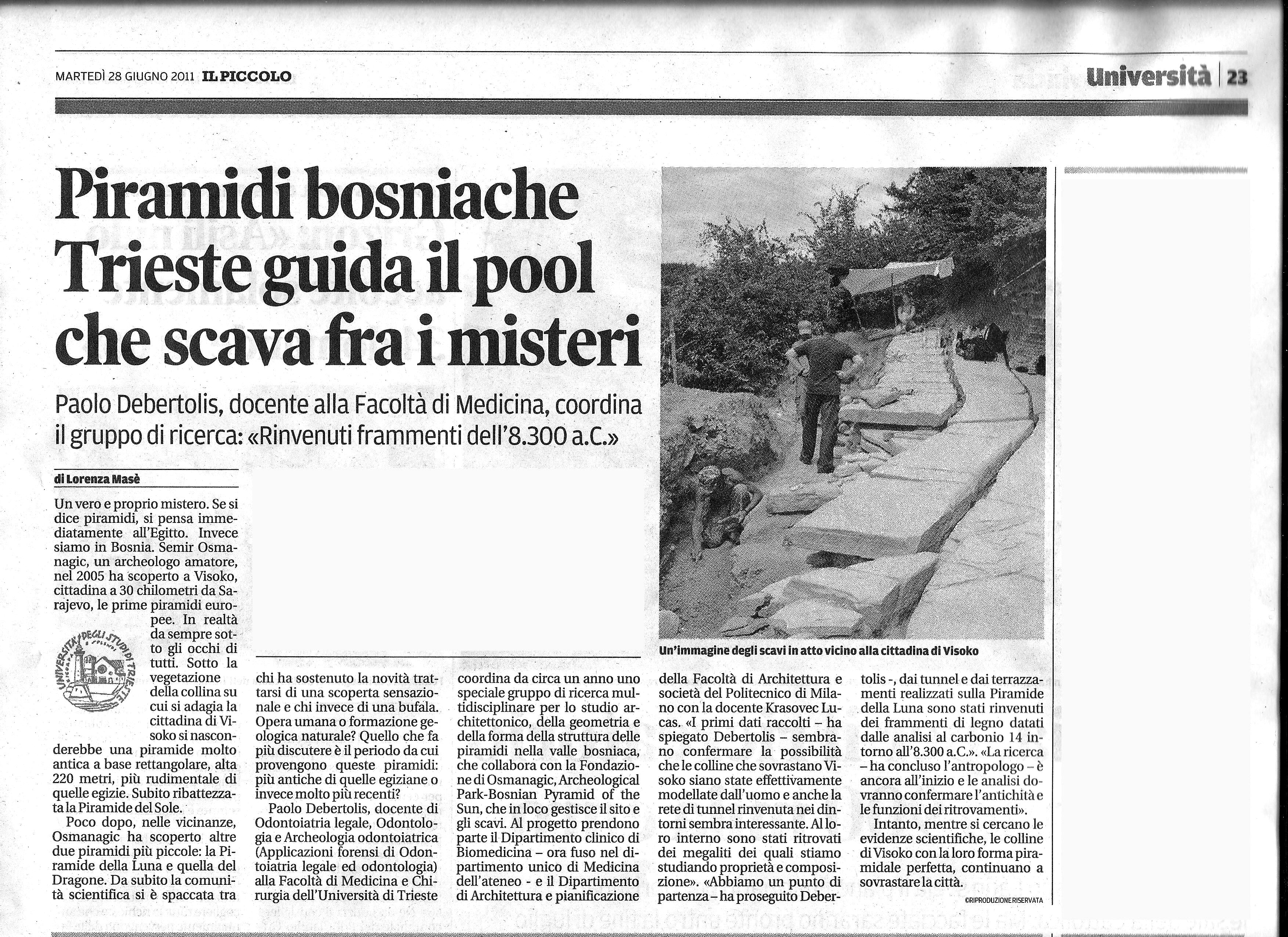 Il giorno 28 giugno 2011 il quotidiano nazionale IL PICCOLO ha pubblicato un articolo di Lorenza Masè sulle ricerche del SB Research Group a Visoko (Bosnia-Erzegovina).